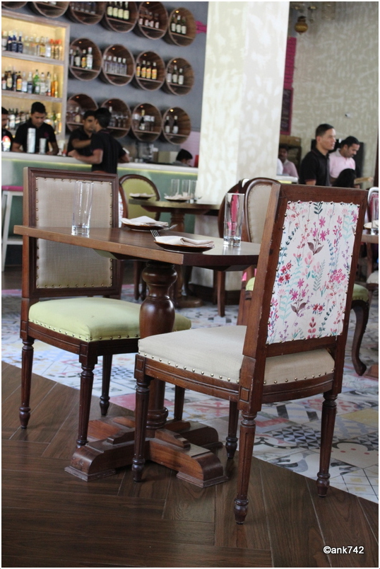 The inside seating is a beauty - it screams pink, with the predominant use of the color heavily in their decor and furniture.They have the high rise bar table setup to the comfy sofa setup to the regular heavy wooden table-chair setup. The furniture brings out a floral feel yet class apart.